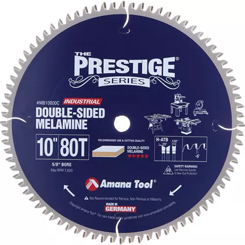 T32906 Amana 10" x 5/8" x 80T ATB Electro-Blu Double-Face Melamine Saw Blade