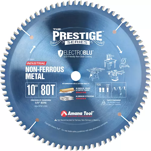 Thanks to its special carbide formulation and blade geometry, this is the ideal blade for cutting relatively thin-walled aluminum and non-ferrous extrusions and frames. The negative hook angle (-6°), triple-chip grind and thick plate combine to produce a superior finish. The blade can also be used to cut other "difficult" materials such as plastic, PVC tubing, fiberglass and ACM (Aluminum Composite Material).