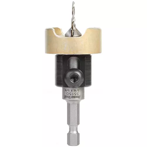 Features an adjustable, heavy-duty, revolving depth-stop with a strong thrust ball bearing for quick and easy adjustment of the countersink depth without scratching or burning surfaces.