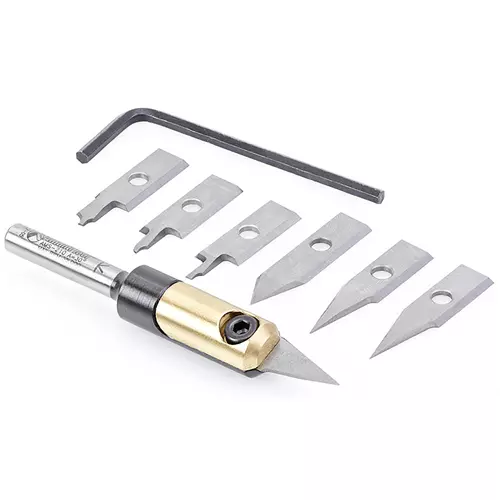 The 8-piece In-Groove collection contains industrial insert solid carbide knives that can quickly and easily be interchanged while the tool body remains mounted in the CNC machine, minimizing downtime and helping maintain consistent cutting accuracy. Solid carbide insert carbide knives produce crisp clean cuts and last at least twice as long as comparable solid carbide bits.