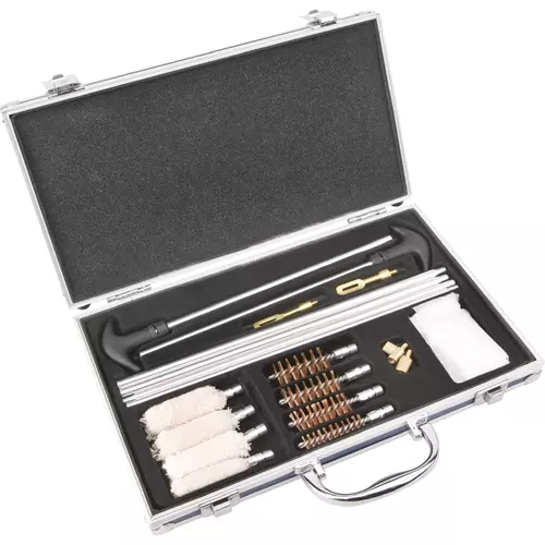 For all shotgun owners, this kit includes cleaning rods/handles, bore mops, phosphor bronze brushes, slotted tips, rod adapters and cleaning patches, all organized in a sturdy case.