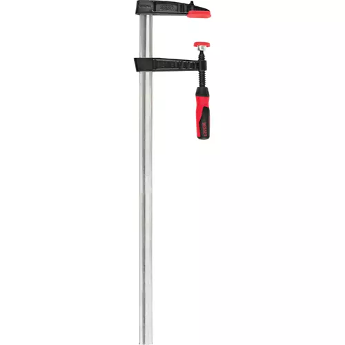 The Bessey industrial-duty, TJG-style 24" Tradesmen Deep-Reach clamps are designed with an hourglass-shaped bar that minimizes the flexing or bending common with flat bar rails.