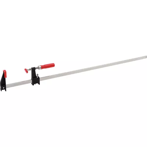 Bessey Clutch style bar clamps are a popular regular-duty clamp used by cabinet makers, woodworkers, metal workers, and homecrafters across North America. These easy to use clamps are suitable for "close quarters" clamping. Each clamp features powder coated, ductile cast iron jaws and a nickel plated, serrated rail; the non-marring pads on the top and bottom jaws make sure your workpiece stays secure and safe. 3 piece slip clutch plate keep the jaw sturdy and in place and the ergonomic shape makes it easy on your hands to use. 2-1/2" throat depth, 600 lb. clamping force.