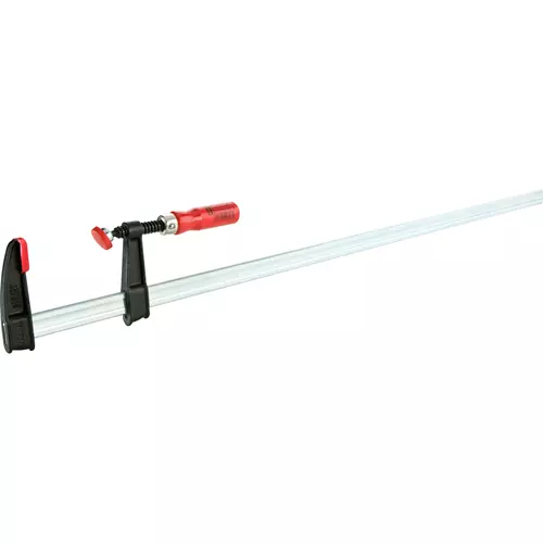 Bessey's simply unequalled, proven clamp design has made it the choice of professionals worldwide. Tradesmen bar clamps are fast action, high quality sliding arm bar clamps. These clamps feature a patented profiled rail, I beam design that minimizes the flexing or bending common with flat bar rails, patented non-slip locking device, zinc-finished drawn rail to prevent black marks from appearing on wood, protective non-marring pads, and a comfortable ergonomical grip wood handle. 2-1/2" throat depth.