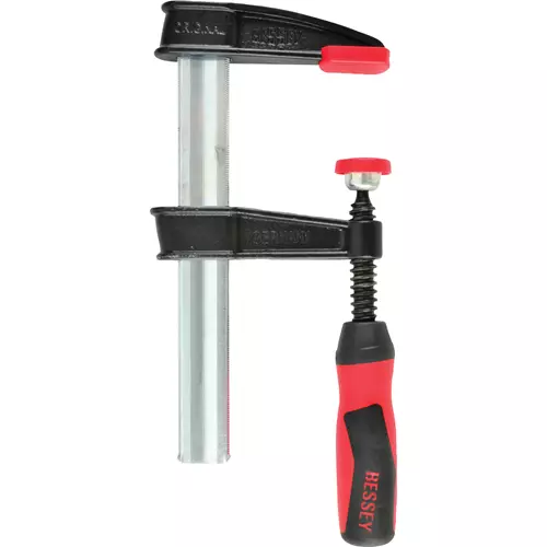 The Bessey light-duty, TJG-style 6" Tradesmen clamps are designed with an hourglass-shaped bar that minimizes the flexing or bending common with flat bar rails.
