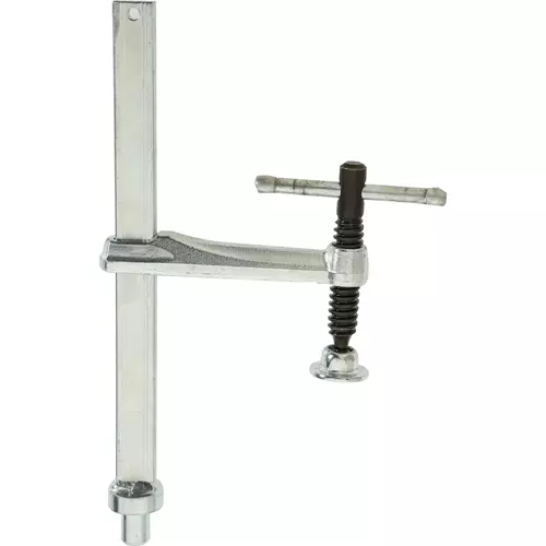 Precise, individual clamping with variable height and fixed throat depth. These clamps features a tempered profile and sliding arm for strong, dependable clamping. This clamp features a T-bar handle with rounded ends.