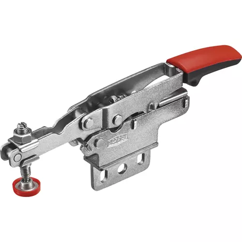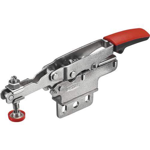 cribs, and consolidated inventories. This horizontal toggle clamp auto-adjusts to variations in work piece height from 0-13/16" (0-20 mm) and integrated pressure screw allows clamping force adjustment from 25-250 lbs. Holding capacity up to 450 lbs. and has a large ergonomic handle for ease of use.