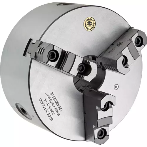 This D1-8 camlock 3-jaw chuck is made with a cast-iron body, 2-piece, hardened jaws, and come complete with a chuck wrench.