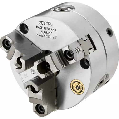 This is a 5" self-centering chuck with fine adjustment offering 0.0004" concentricity. The plain back mounted 3-jaw chuck has forged steel bodies for durability and 2-piece, hardened jaws.