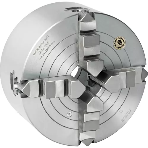 This is a 5" combination chuck utilizing a combination of a scroll mechanism and independent jaw screws. The plain back mounted 4-jaw chuck has a cast-iron body for durability and hard solid reversable jaws.