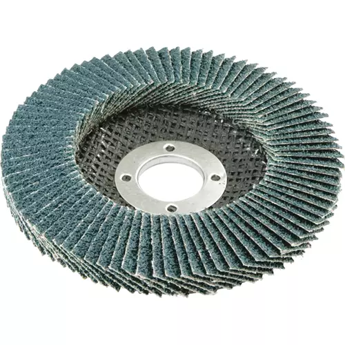 This high-density Zirconia Flap Disc is made of overlapping cloth backed sandpaper segments that are designed to wear away, constantly exposing fresh new grains. Zirconia grit provides up to 3 times faster material removal than resin fiber discs and premium abrasive cloth provides up to 15 times longer life than resin fiber discs.Size: 4-1/2" Bore: 7/8" Grit: 40 Type: 29