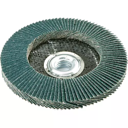 This high-density Zirconia Flap Disc is made of overlapping cloth backed sandpaper segments that are designed to wear away, constantly exposing fresh new grains. Zirconia grit provides up to 3 times faster material removal than resin fiber discs and premium abrasive cloth provides up to 15 times longer life than resin fiber discs.
