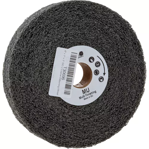 This silicon carbide 2 coarse deburring wheel is designed for high stock removal, cool working, and easy work piece conformability. Deburring wheels quickly remove light burrs, blends machine and belt marks and applies final finishes. Made for general purpose cleaning, rust removal and removal of discoloration from welds.
