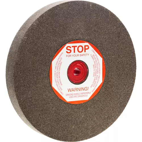 This 60 grit Aluminum Oxide bench grinding wheel measures 8" x 1" and includes a 1/2"-1-1/4" bore. The nested bushings adjust to 1/2", 5/8", 3/4" and 1".