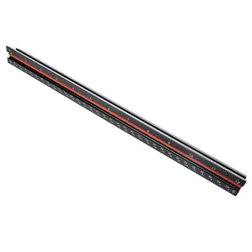 The T32524 Dasqua 12" Triangular Square Ruler features three sides with six different scales.
