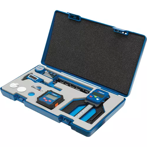 No guesswork needed when measuring with this convenient 4-piece digital woodworking set.
