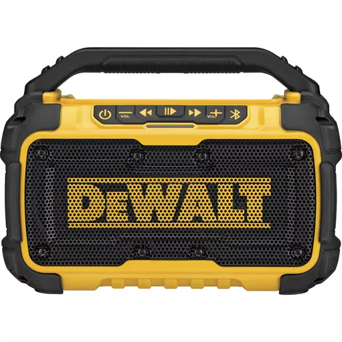 Power the Jobsite Bluetooth Speaker with DEWALT 12V MAX*, 20V MAX*, or FLEXVOLT batteries, all sold separately.