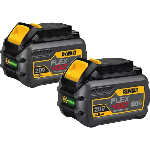 The DCB606 20V/60V MAX Battery pack changes voltage when you change tools, powering a line of powerful 60V MAX tools, 120V MAX tools, and backwards compatible to existing 20V MAX tools and chargers. The battery pack is smart enough to know when to provide runtime for 20V MAX tools (6.0Ah) and power in the new 60V MAX and 120V MAX tools. Durable construction with a single piece cell holder and an LED state of charge display allows you to monitor your power levels and optimize work times. This item includes two of the DCB606 batteries.