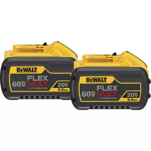 The dual-voltage FLEXVOLT® 20V/60V MAX* 9.0 Ah battery automatically changes voltage when you change tools, providing up to 6X runtime, compared to the T22546(DCB201), in 20V MAX* tools and the power of corded in 60V MAX* and 120V MAX* tools. 180 Watt hours of energy in each battery, 360 Watt hours combined. 9.0Ah capacity when used in a 20V Max tool. Compatible with all 20V Max, 60V Max, and 120V Max tools. Features an LED state of charge display.