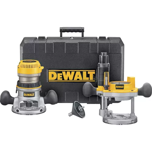 The base also has a patented through-the-column dust-collection system. This allows a vacuum to be attached to the router without blocking your line of sight. The DW618PK DEWALT 2-1/4-Inch EVS Fixed Base/ Plunge Base Router Combo Kit with Soft Start is backed by a three-year limited warranty.