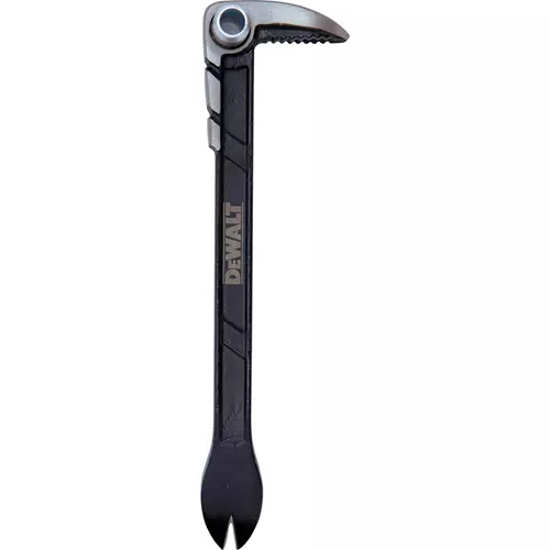 A clawbar with extra wide strike surface that helps the user accurately strike the bar to get under a nail or behind material to pry. Nail digger exposes the head of a flush nail so it can be pulled with minimal damage to the wood while the pointed penetration end digs into material to remove embedded nails. I-beam shaft provides strength without adding weight. 10" total length, 0.82 lbs.
