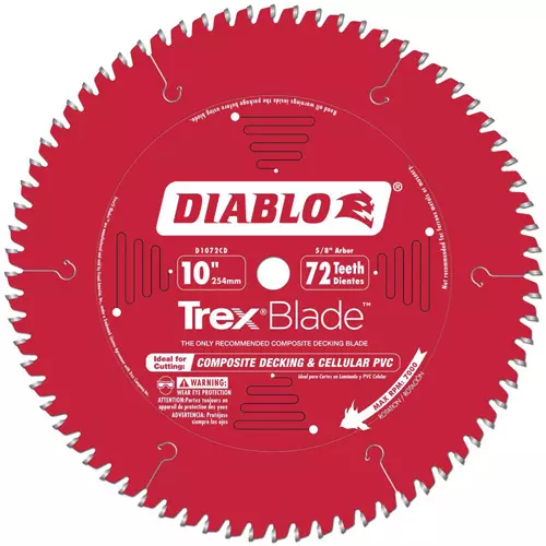 chip tooth grind design, Perma-SHIELD® non-stick coating, and specific TiCo™ Hi-Density carbide to deliver maximum performance. In addition, all Diablo/Trex saw blades have a super thin-kerf design which requires less cutting power, making them ideal for underpowered saws at the jobsite. In fact, Trex and Diablo have conducted extensive field testing among contractors at composite decking job sites to evaluate the performance of the new blade. The tests consistently showed that the blade offers more efficient and cleaner cuts, less "gumming" of blade teeth, and greater longevity when compared to standard saw blades currently on the market.