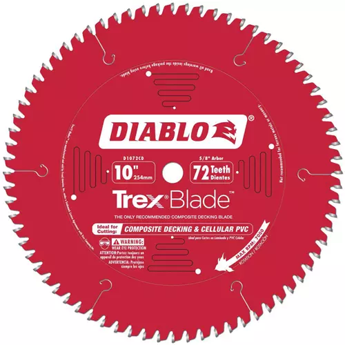 The Diablo/Trex co-branded blade will be offered in three sizes – 12", 10" and 7-1/4" – for use on hand-held, miter and table saws. This new saw blade series has a modified triple