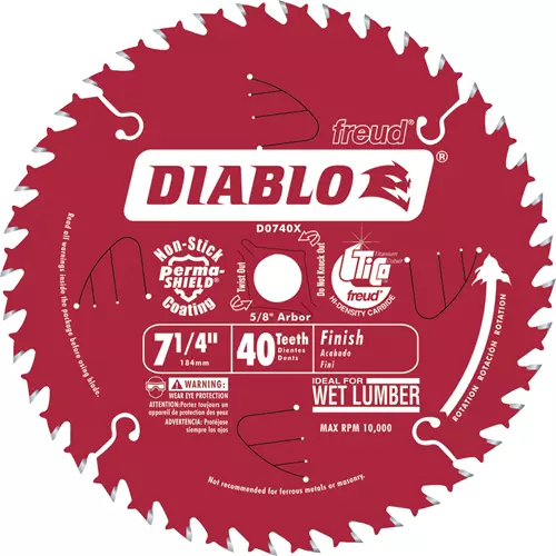 For a clean-cutting blade that makes smooth finish crosscuts in a variety of wood types, look no further than the Freud D0740X Diablo 7.25-Inch Finishing Saw Blade. Ideal for finish work such as deck and fence construction, this is your go-to finishing blade for slicing and ripping through hardwood, softwood, plywood, and fascia board. For strong, long-lasting resistance, the blade features a tough steel plate and high-density carbide tips.