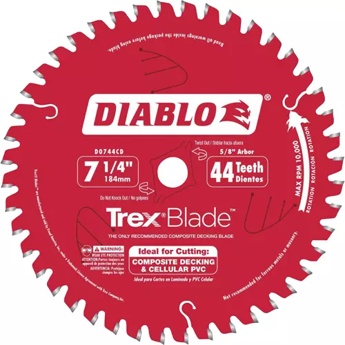The Diablo/Trex co-branded blade will be offered in three sizes – 12", 10" and 7-1/4" – for use on hand-held, miter and table saws. This new saw blade series has a modified triple