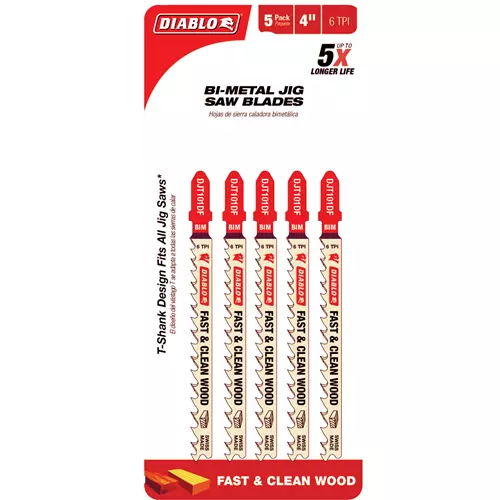 Diablo's bi-metal teeth jigsaw blades application are designed for maximum durability, longer life, and fast cuts in wood applications.