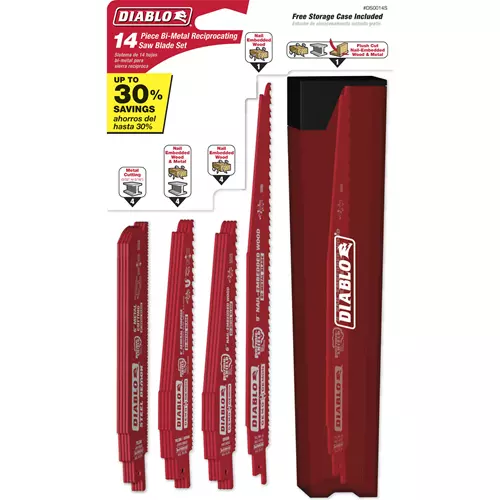 The new Diablo Steel Demon™ Bi-Metal Reciprocating Blade deliver 4x the performance of standard blades. These are the first Dual Tooth Design Bi-Metal blades with Perma-SHIELD® non-stick coating and an ultra-hardened cutting edge with hardness to HRC62 for maximum durability and speed.