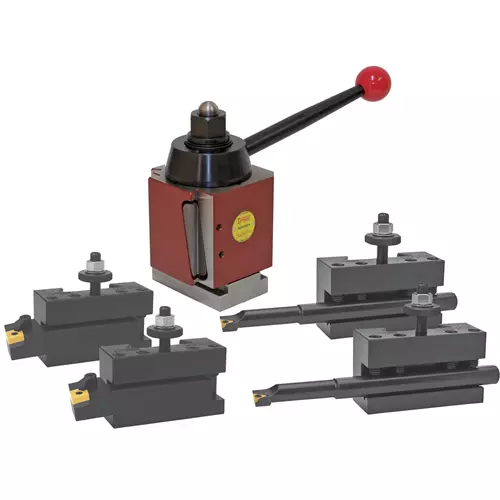 The triple action wedge-locking system from Dorian provides a powerful combination of a downward, outward and inward force that simultaneously locks the holder. Maximizing rigidity further is the tool post body made from chromium-molybdeum