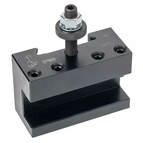The triple action wedge-locking system from Dorian provides a powerful combination of a downward, outward and inward force that simultaneously locks the holder. Maximizing rigidity further is the tool post body made from chromium-molybdeum