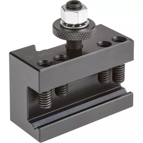 The triple action wedge-locking system from Dorian provides a powerful combination of a downward, outward and inward force that simultaneously locks the holder. Maximizing rigidity further is the tool post body made from chromium-molybdeum