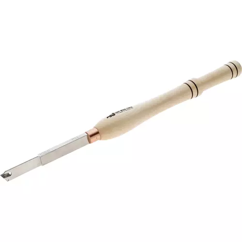 The easiest, safest, most versatile parting tool you will ever use. With perfect geometrics built right into the replacement cutter, you never need to worry about the fuss of sharpening. Genuine EWT Carbide Cutters cut wood much cleaner and stays sharper longer than HSS tools. Insert release key included, the handle is a comfortable 14" maple. Cut width 1/8", blade is 3/32" x 3", tool bar length 6". Includes one extra Pi1 carbide cutter.