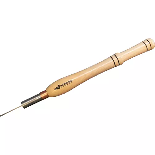 The easiest, safest, most versatile parting tool you will ever use. With perfect geometrics built right into the replacement cutter, you never need to worry about the fuss of sharpening. Genuine EWT Carbide Cutters cut wood much cleaner and stays sharper longer than HSS tools. Insert release key included, the handle is a comfortable 14" maple. Cut width 1/8", blade is 3/32" x 3", tool bar length 6". Includes one extra Pi1 carbide cutter.