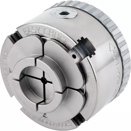 The Easy Jaw™ System allows you to change from one set of jaws to the next in about 30 seconds. The patent-pending Snap-Lock Technology uses no jaw screws or wrenches to exchange jaws; simply use the supplied jaw key to depress a keeper latch in the jaw and slide each jaw right out. You then slide in the next jaw type until you hear the "snap." This gets you back to turning quickly with the jaws you need to hang on to your project safely. The Easy Chuck's Zoom Ring™ also gives you the ability to open and close the chuck very quickly for various gripping diameters with just your fingertips. Grips 1-3/8" diameters and expands into 2-1/8" recesses. Use the Zoom Ring™ to bring the jaws into position to lightly grab your project, then use the chuck key for final tightening.