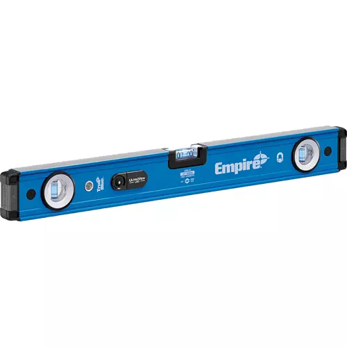Empire is committed to delivering innovative solutions designed to meet the needs of the modern jobsite. The e95 UltraView™ LED level combines the professional features of the E75 TrueBlue™ box level with the patented, UltraView™ technology to provide superior vial visibility in dark, low and bright light applications. The patented, UltraView™ system uses dual LED's, optical brightener and e-Band™ vials to provide high definition viewing in all conditions. Its IP54 rating meets the durability demands of the jobsite by protecting it from dust and water.