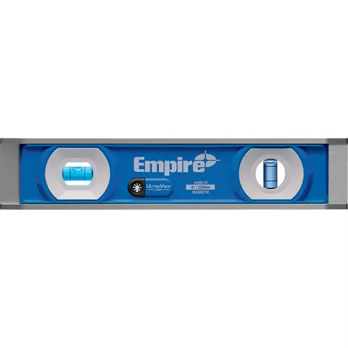 Empire is committed to delivering innovative solutions designed to meet the needs of the modern jobsite. The em95 Ultraview LED torpedo level combines the professional features of the Empire True Blue torpedo level with the patented, Ultraview technology to provide superior vial visibility in dark, low and bright light applications. The patented, Ultraview system uses dual LEDS, optical brightener and e-band vials to provide high definition viewing in all conditions. Its IP54 rating meets the durability demands of the jobsite by protecting it from dust and water.