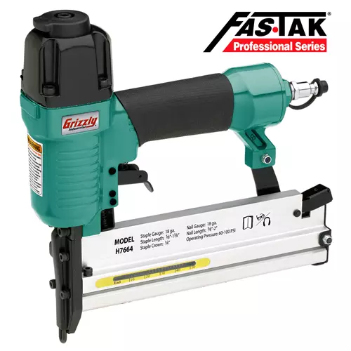 This Nail Gun/Staple Gun shoots 5/8" to 2" 18-ga. brads and 5/8" to 1-5/8" 18-ga. staples with 1/4" crown. Features a view window that tells you when to reload, trigger mode, adjustable depth stop, rubberized grip and adjustable exhaust port.- 100 shot magazine capacity