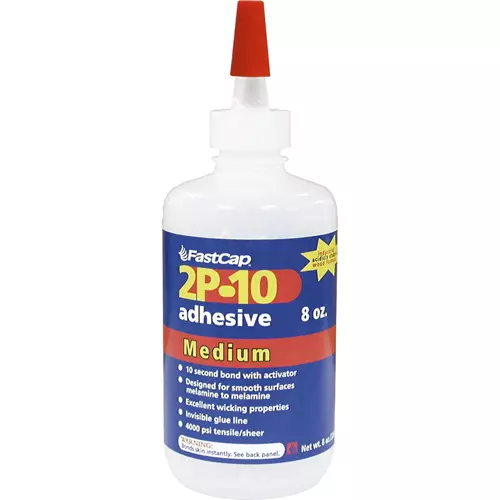 With 2P-10 you can easily glue the hardest joints in cabinetry without clamping! Thick: For use on porous surfaces such as particle board.
