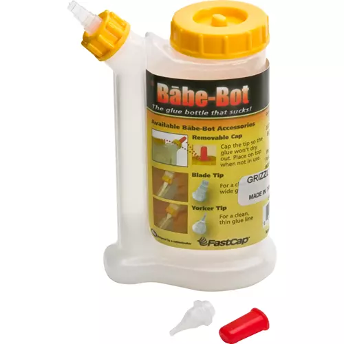 The same as the GlüBot, but in a smaller size! The GlüBot from FastCap is the only glue bottle that will not drip or spill, and the easy-squeeze will put the glue where you want it, and only where you want it. The GlüBot is designed with a 2-chamber system that pushes glue from the bottom up through the secondary side chamber with ensures fresh glue every time. Also features a wide mouth for easy filling, a wider base for better stability, and includes 1 Blade tip, 1 Yorker tip, and 1 red cap. 4 oz. size.