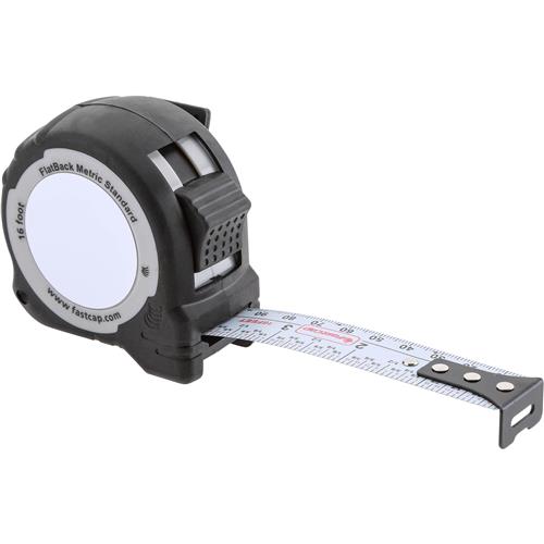 A good ol' basic tape measure with no fancy stuff - except for the flatback design. It's a flexible tape that lays flat to get the blade close to marks. Great for measuring curved objects. Marked in 32nds for the first 12" and in 16ths thereafter. Imported Every ProCarpenter tape has 7 features that make them stand out from the pack: - A compact, shock resistant rubber coated casing makes it easier to grip - Built-in stainless steel pencil sharpener - Lever action belt clip - Heavy duty 1" wide blade with 4 rivet construction - High contrast tape for readability - Erasable note pad - Dual thumb & finger blade locks.