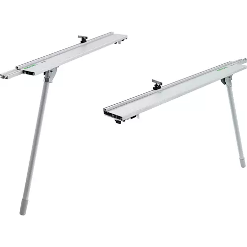 Two folding extensions (left and right) with tool-free connection to the Kapex. Provides stock support with integrated flip stop, measurement scale and adjustable leg. Expands from 58-1/4” (1480 mm) to 94-1/2” (2400 mm). Consists of Left Extension 497 353 and Right Extension 497 352. Supplied with imperial scale.