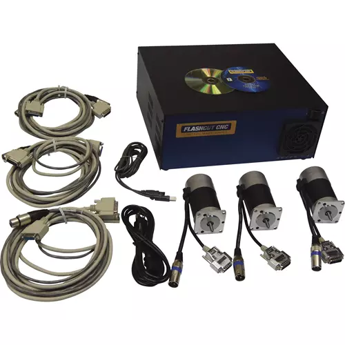 Upgrade to a 12 Amp Pro-Series Servo Control and NEMA 23 Servo Motors for the ultimate in power, speed and precision. Includes FlashCut CNC Windows-based software, (3) NEMA 23 servo motors with 10' servo xables, motor mounts, pulleys, belts, and associated hardware. Ball screw upgrades are also available. Designed for our G0704.