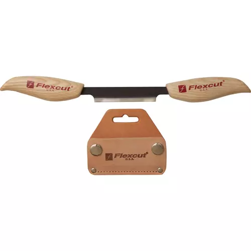 This handy little draw knife was developed for fan carving but works great for skinning bark and roughing-off corners.It fits nicely into your tool collection.