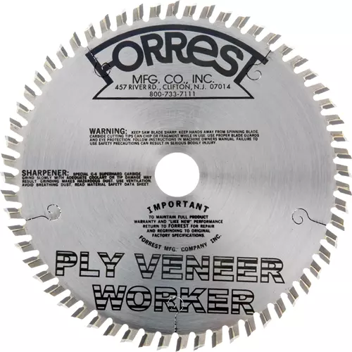This commercial-quality 160mm (6.30") blade is ideal for rip and cross-cutting two sided veneer plywood, whether finished or unfinished. It is also perfect for cutting solid woods. In fact, there is no comparable blade on the market today. The Ply Veneer Worker (PVW) uses the same high-precision technology that's behind the popular Forrest Woodworker II blade. Designed for cutting wood products only. Works like a charm with the Grizzly T10687 Track Saw! 60T, 160mm, 20mm bore. Tooth style ATB. Kerf 0.100".