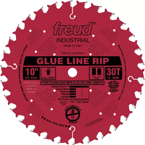 This blade's specially designed triple chip tooth design produces extremely smooth, true surfaces for gluing and finish work. There is no need for sanding or jointing after the cut. The ideal working range is from 1/8" to 1" thick. This blade also features laser cut anti-vibration slots, practically eliminating the vibration that resonates in standard blades. With this ultimate ripping blade, there is no need for stabilizers.