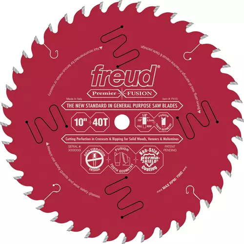 Freud engineers have discovered the ultimate combination of fused tooth grind geometry, blade body rigidity, precise tensioning, a special carbide blend and superior carbide brazing, non-stick Perma-SHIELD® coating and high performance anti-vibration – all working together in concert to provide the ultimate cut. One blade does it all. Whether you're ripping or crosscutting, a Premier Fusion blade will tackle any project.