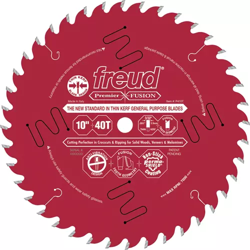 Freud engineers have discovered the ultimate combination of fused tooth grind geometry, blade body rigidity, precise tensioning, a special carbide blend and superior carbide brazing, non-stick Perma-SHIELD® coating and high performance anti-vibration – all working together in concert to provide the ultimate cut. One blade does it all. Whether you're ripping or crosscutting, a Premier Fusion blade will tackle any project.